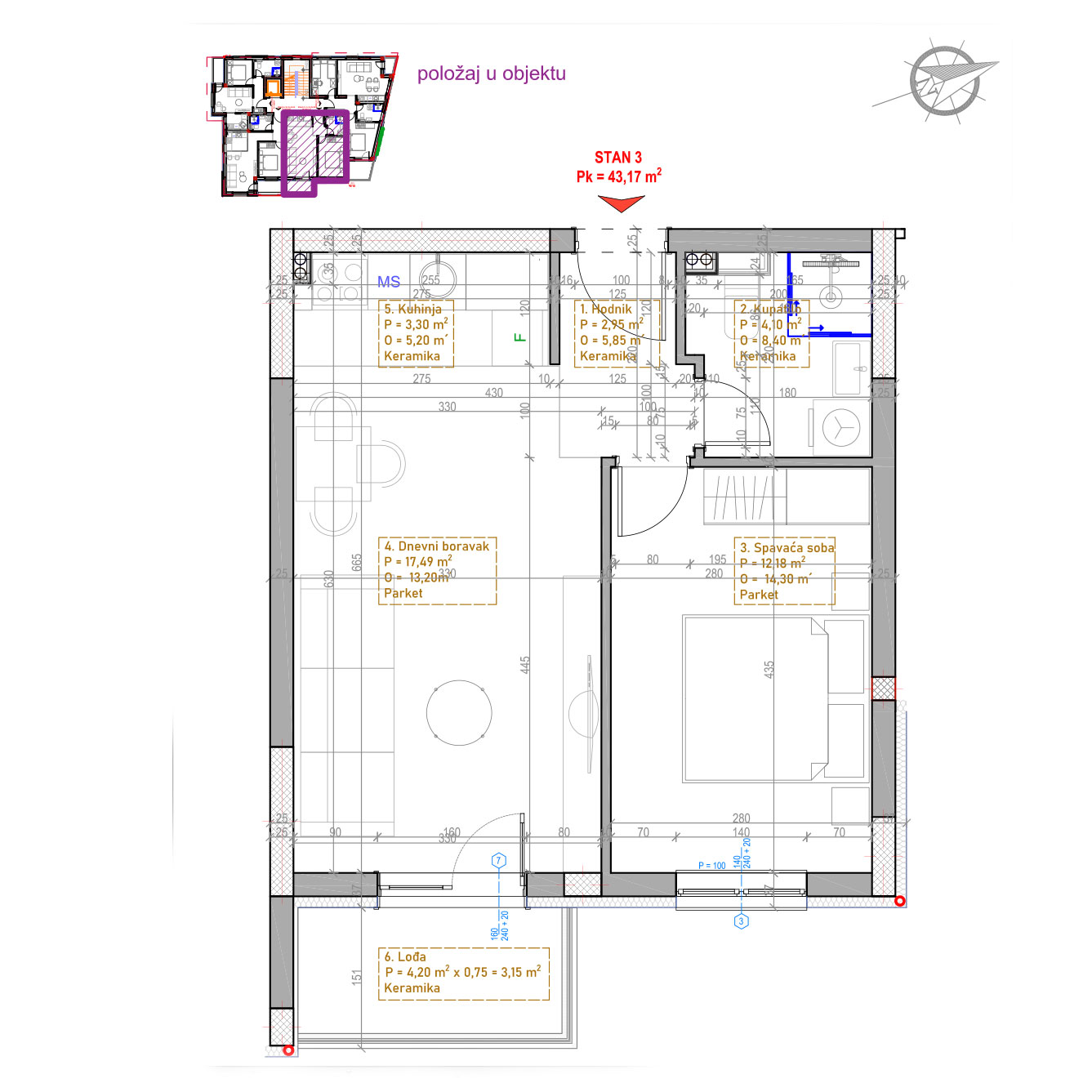 Ukupna obračunska površina: 43,17 m²
