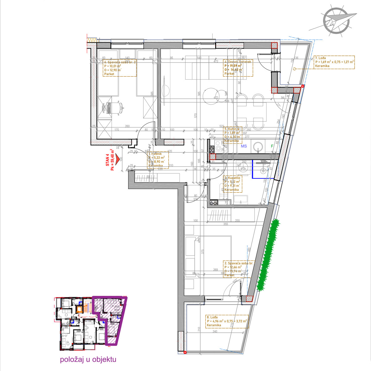 Ukupna obračunska površina: 59,48 m²